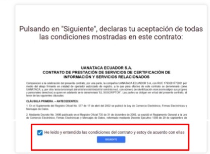 Lee las condiciones del contrato y acéptelas dando click en el casillero