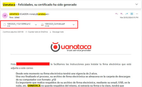 * Recibirás un correo con el nombre "UANATACA" 👀