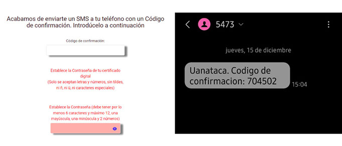 Para Autentificar la información, UANATACA te envía un SMS al número de celular con el cual hayas ingresado en el formulario de solicitud.